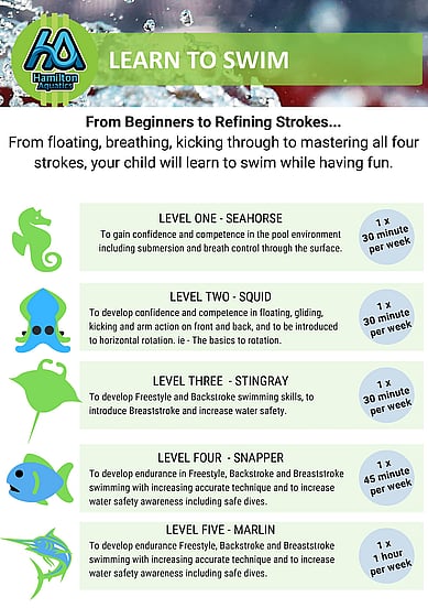 Swimming lessons Hamilton - Join the Hamilton Aquatics Learn To Swim program and develop your love for swimming.